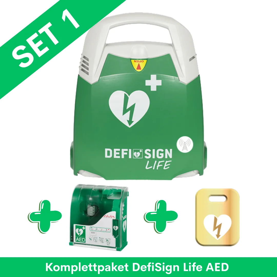 AED-Komplettpaket 1 mit DefiSign LIFE AED, AIVIA 100 Wandschrank und Gold Wartungsvertrag