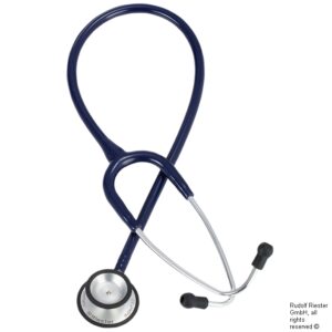 Reinigen Sie das Stethoskop zwischen den Einsätzen, um die Hygiene zu wahren und Kreuzkontaminationen zu vermeiden. Vermeiden Sie den Kontakt mit extremen Temperaturen und Lösungsmitteln, die das Material beschädigen könnten.
