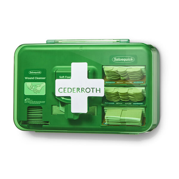 So gut wie alles, was zur Versorgung kleinerer Wunden erforderlich ist, in einem praktischen Spender. Der Pflasterspender ist eine optimale Ergänzung zur Erste-Hilfe-Station. Er wird idealerweise an Stellen angebracht, an denen es leicht zu Schnittwunden kommt. Hinter der Staubschutzabdeckung bleibt der Inhalt sauber. Nachgefüllt wird der Spender mit dem mitgelieferten Spezialschlüssel. Abmessungen (L x B x H): 20,3 x 30,6 x 15,5 cm.