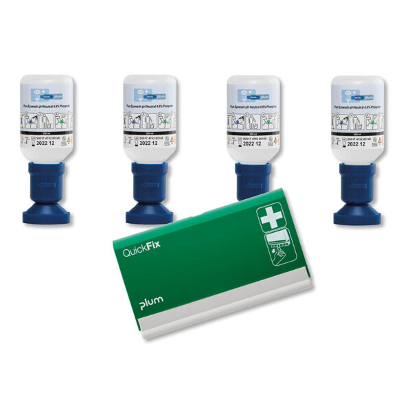 Das Set besteht aus vier 200 ml Flaschen der PLUM Augenspüllösung pH Neutral, einer sterilen 4,9%igen Phosphatpuffer-Lösung zur schnellen Neutralisierung von Säuren und Laugen im Auge. Die ergonomisch gestalteten Flaschen ermöglichen eine einfache und präzise Anwendung, selbst in Stresssituationen.