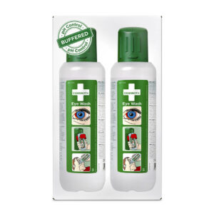 Verlängerte Spüldauer: Zwei 1000-ml-Flaschen für eine gründliche Augenspülung.