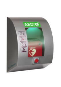Der Zugriff auf den AED ist im Ernstfall schnell und unkompliziert. Ein Druck auf den roten Knopf genügt, und der Defibrillator wird automatisch präsentiert. Diese intuitive Mechanik stellt sicher, dass auch in Stresssituationen keine wertvolle Zeit verloren geht.