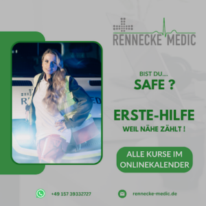 Erste Hilfe zu kennen und anwenden zu können, ist eine Fähigkeit, die im Ernstfall entscheidend ist. Mit Rennecke-Medic bist Du nicht nur für den Führerschein bestens gerüstet, sondern auch für viele andere Lebenslagen. Ob privat oder beruflich – wir haben den passenden Kurs für Dich. Melde Dich an und werde SAFE für alle Fälle.